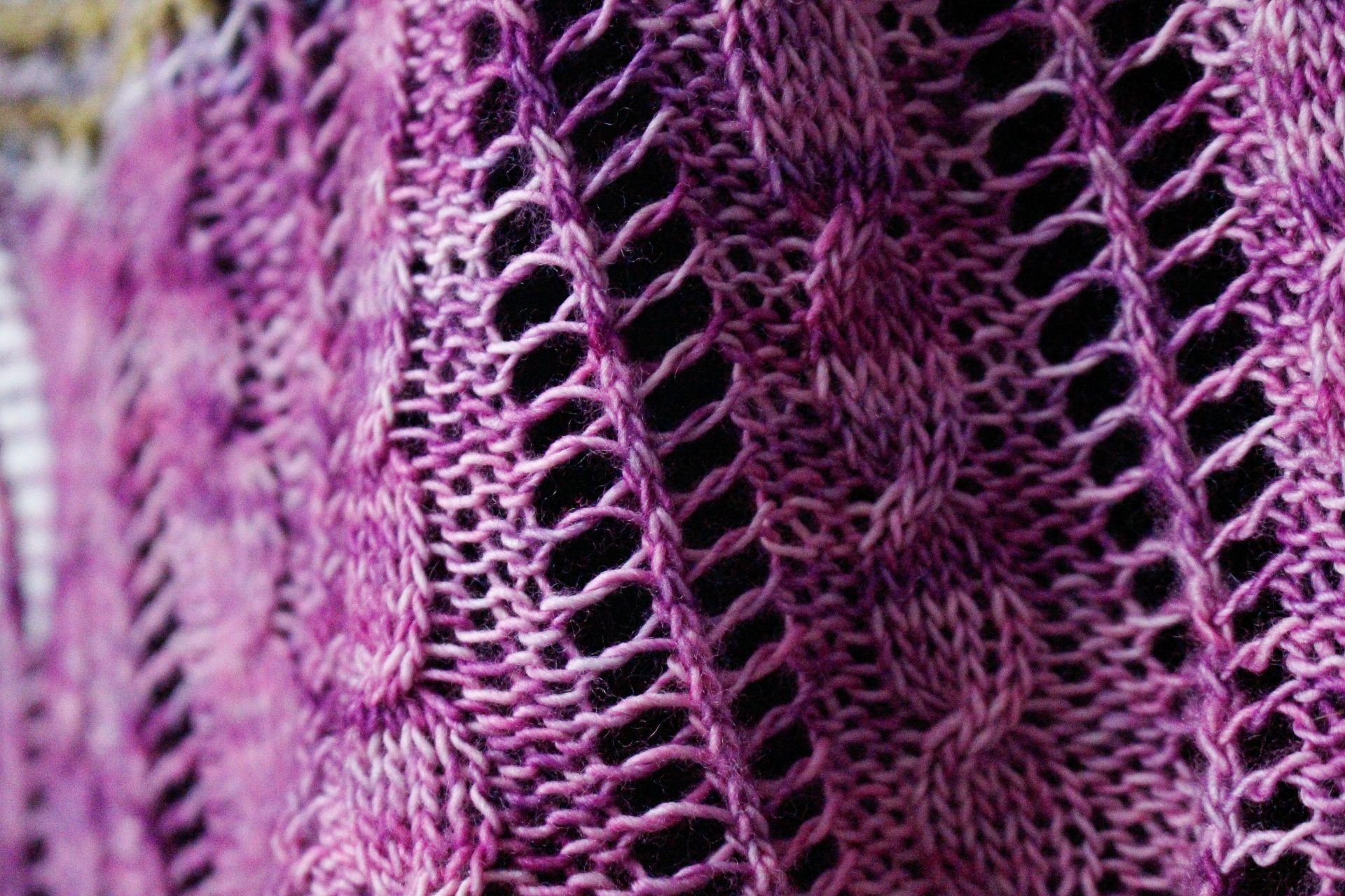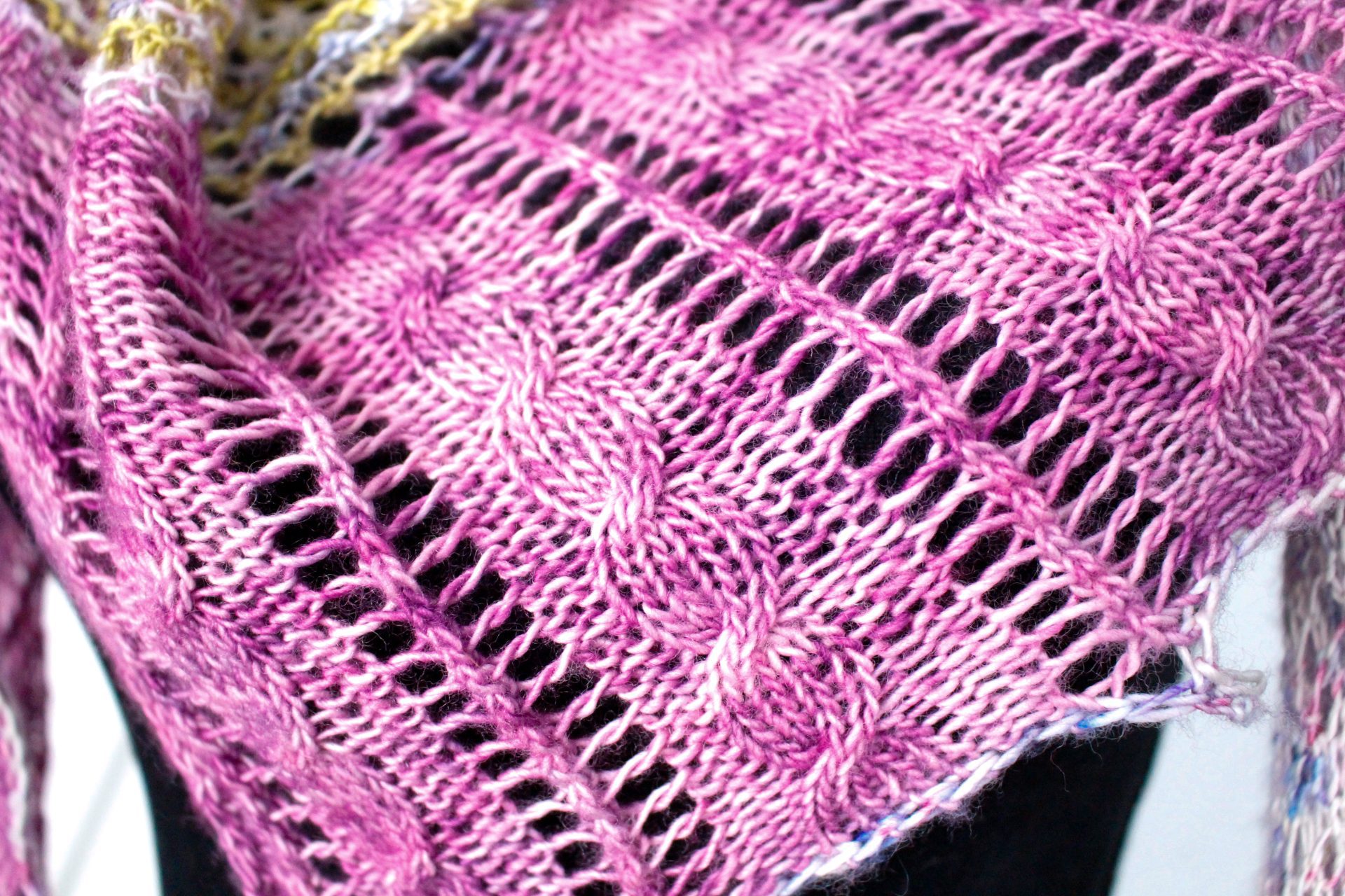 This triangular shawl is worked on the bias, beginning at one corner and gradually expanding as you knit. With three stitches added every four rows, it grows steadily, creating a beautifully flowing shape. The result is a lush, elegant accessory with effortless drape and movement.