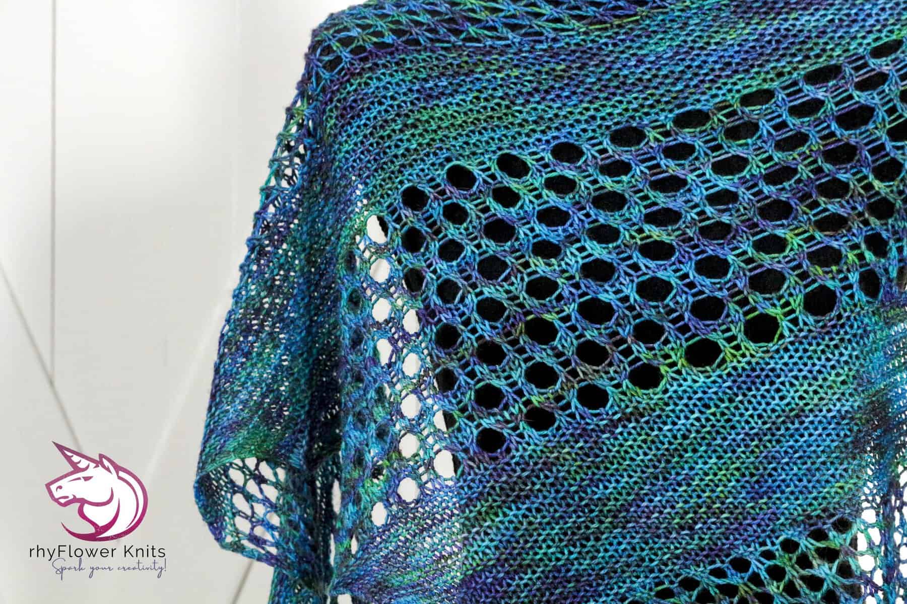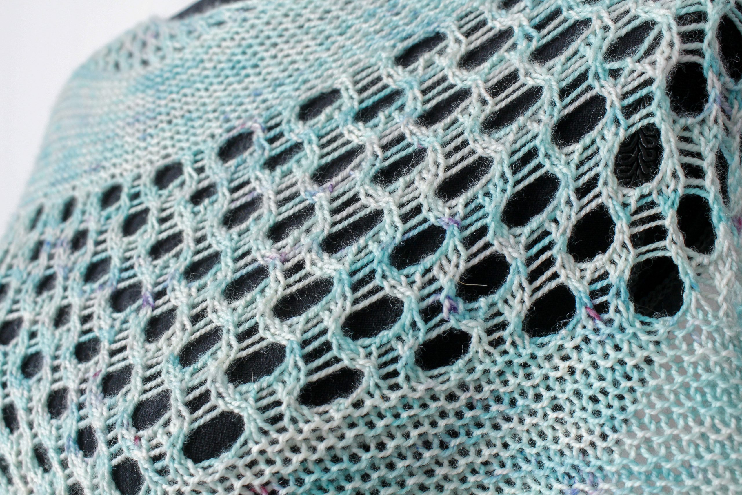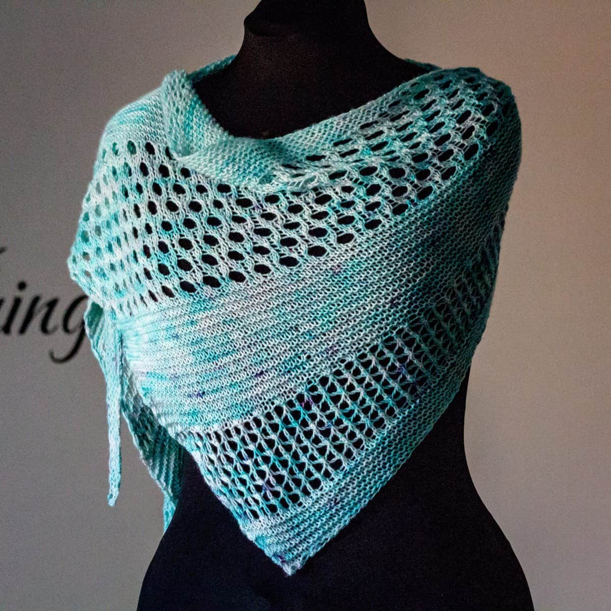 18 stitches by 25 rows in garter = 4โ / 10 cm, after blocking. While gauge is not important, as the fit is not crucial, changes in gauge will cause size differences and the yardage required to complete the project.