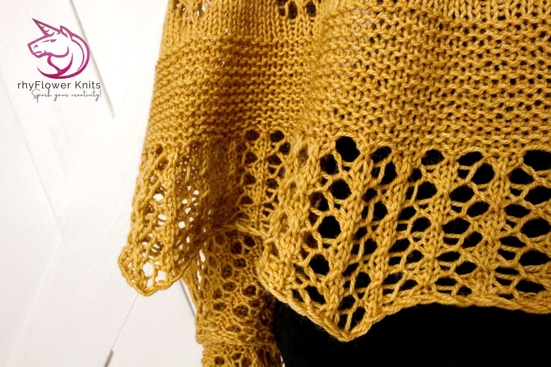21 stitches by 33 rows in garter stitch = 4โ / 10 cm, after blocking. While gauge is not important, as the fit is not crucial, changes in gauge will cause size differences and the yardage required to complete the project.