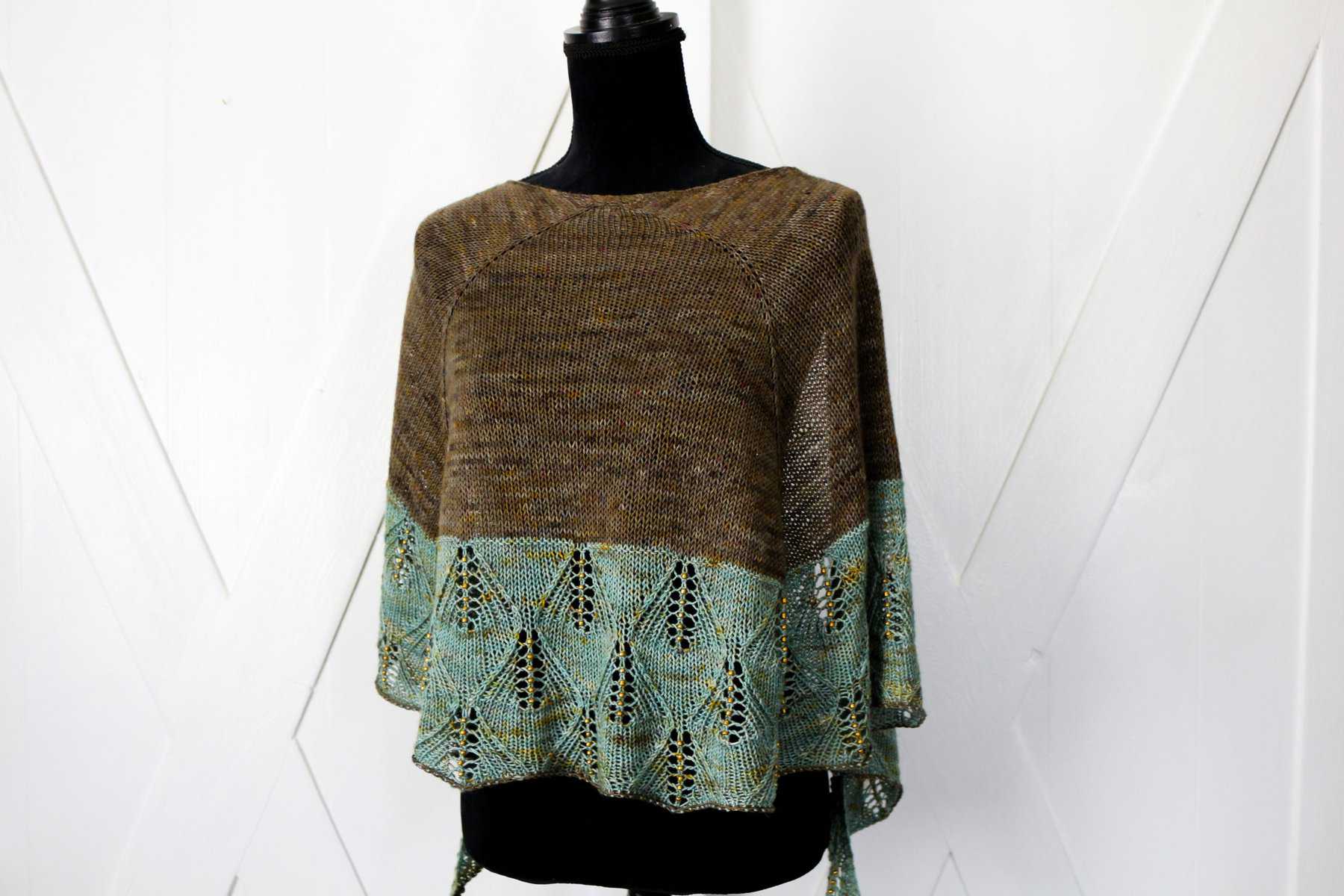 50.5 [72, 93.5]โ / 128.5 [183, 237.5] cm across the wingspan, 16.75 [24, 31.25]โ / 42.5 [61, 79.5] cm deep, after blocking. We made our sample shawl in the medium size.
