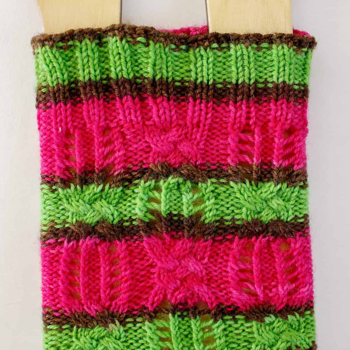 32 stitches by 40 rounds in stockinette = 4โ / 10 cm, after blocking. Gauge is crucial in obtaining the correct fit. Changes in gauge will result in a size difference for your finished socks.