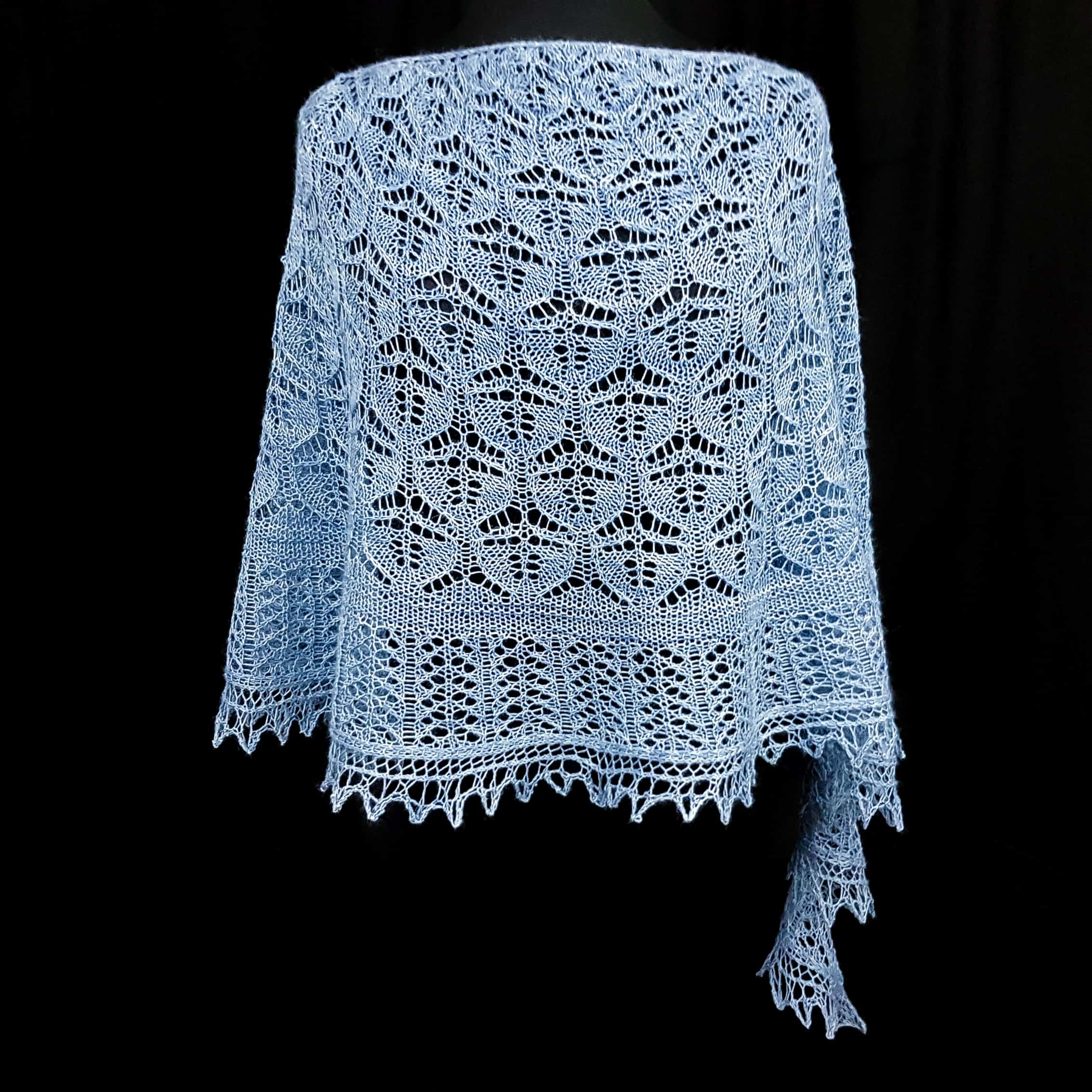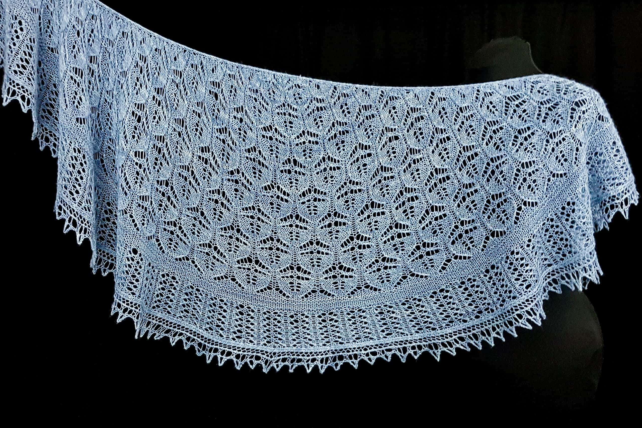 Experience the gentle caress of Eternal Whisper, a masterpiece in soft blue hues that whispers tales of timeless grace. This exquisite shawl design envelops you in an enchanting journey from start to finish. Delve into the intricate lacework that dances on both sides, keeping your hands busy with every stitch. As you immerse yourself in the rhythmic flow of garter and stockinette stitches, let your mind wander freely, guided by the tranquil melody of your needles. And fear not the daunting bind-off, for Eternal Whisper features an applied lace edge, ensuring a seamless and satisfying conclusion to your knitting adventure. Let the delicate beauty of Eternal Whisper serenade your senses and ignite your passion for the art of knitting.