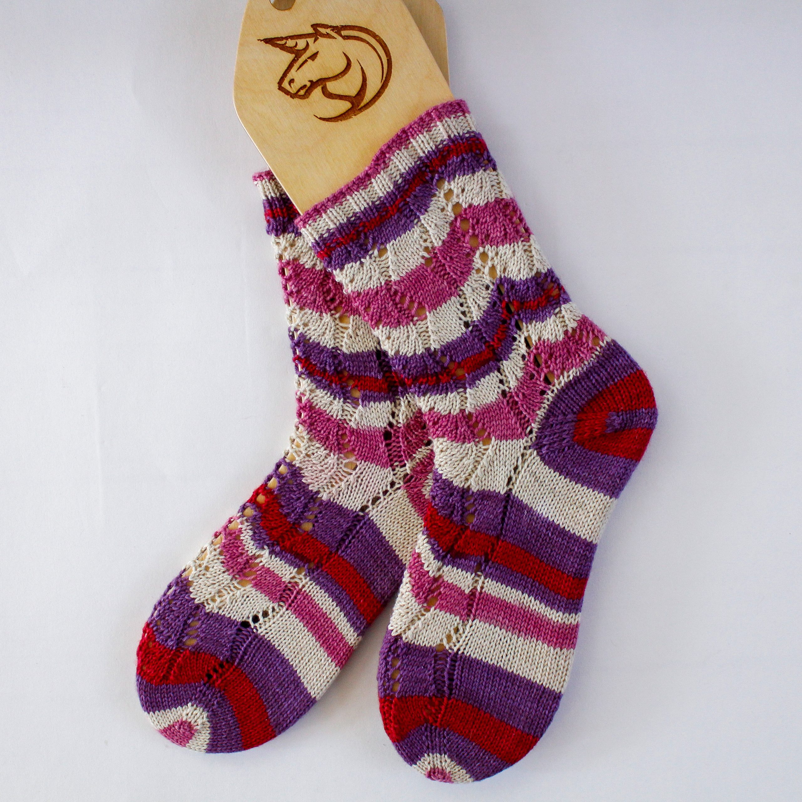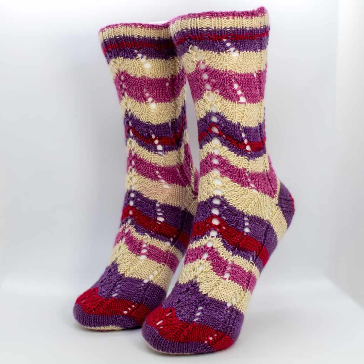 32 stitches by 40 rounds in stockinette = 4” / 10 cm, after blocking. Gauge is crucial in obtaining the correct fit. Changes in gauge will cause a size difference for your finished socks.