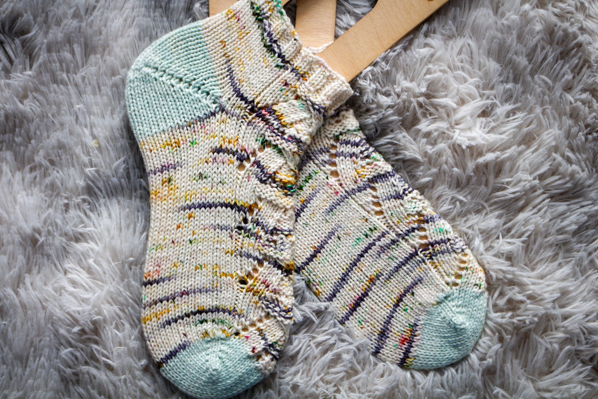 With multiple sizes, you can easily achieve the perfect fit with the intended negative ease. Iโve written this sock pattern with magic loop in mind. However, you can also work on double-pointed needles instead if youโd prefer (just use extra markers to denote the instep and sole stitches).