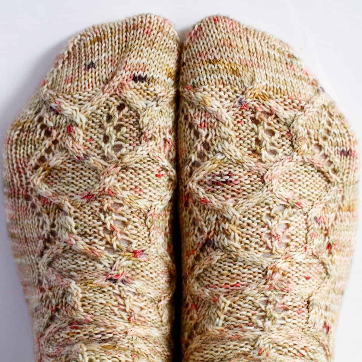 32 stitches by 40 rounds in stockinette = 4โ / 10 cm, after blocking. Gauge is crucial in obtaining the correct fit. Changes in gauge will cause a size difference for your finished socks.