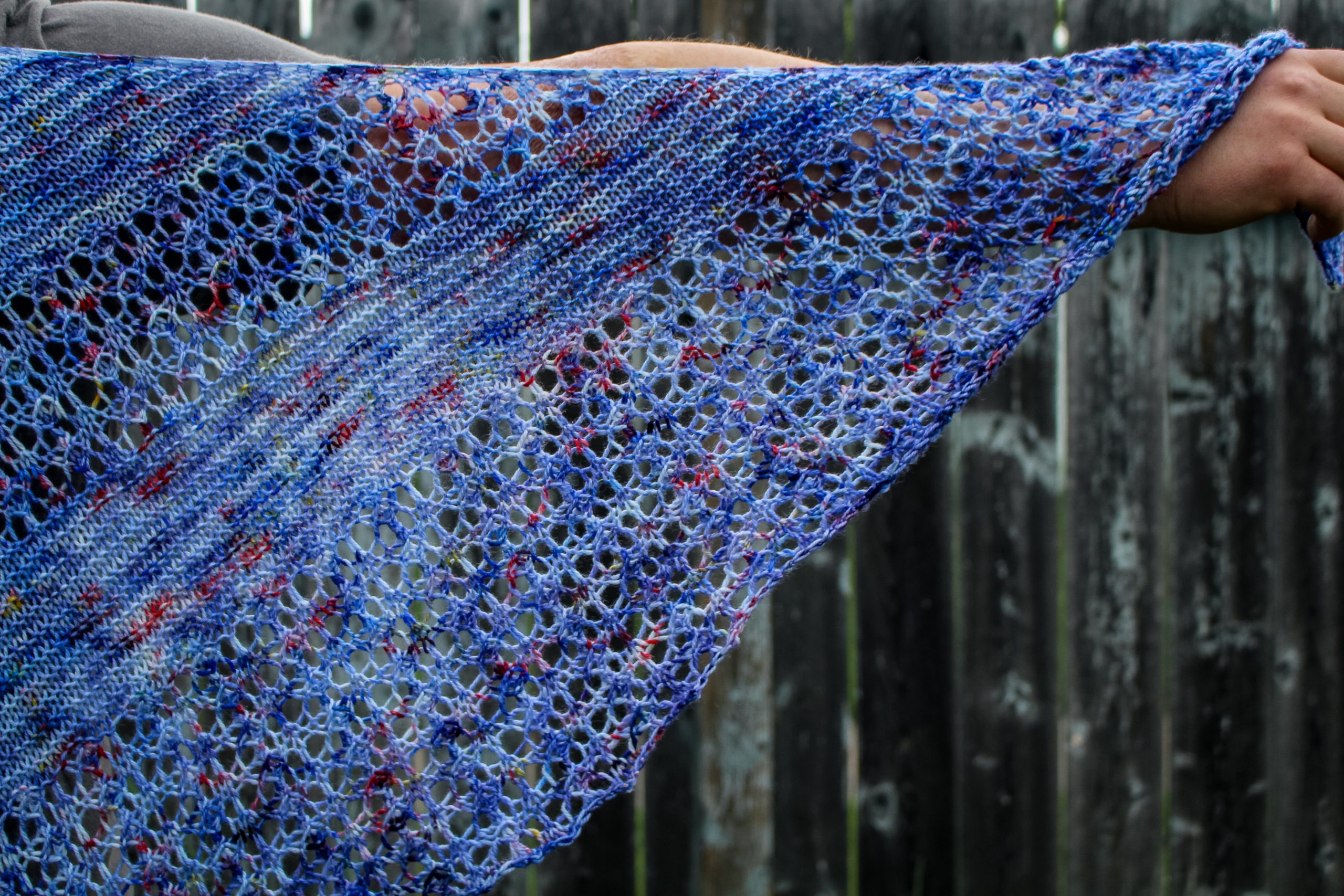 24 stitches by 28 rows in garter stitch = 4” (10 cm) on US7 (4.5 mm) metal needles, after blocking.