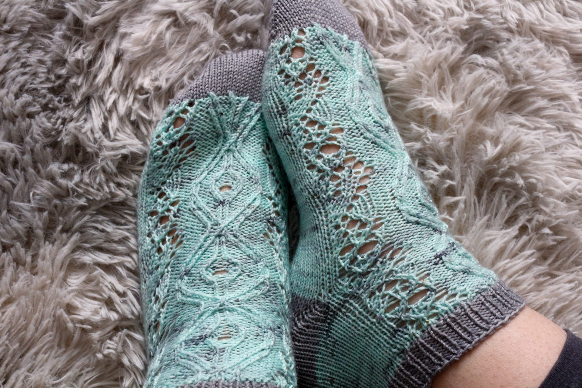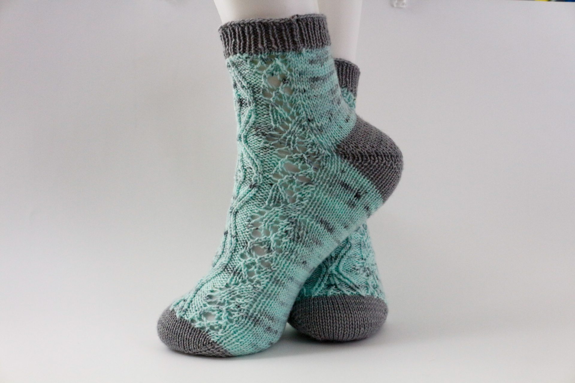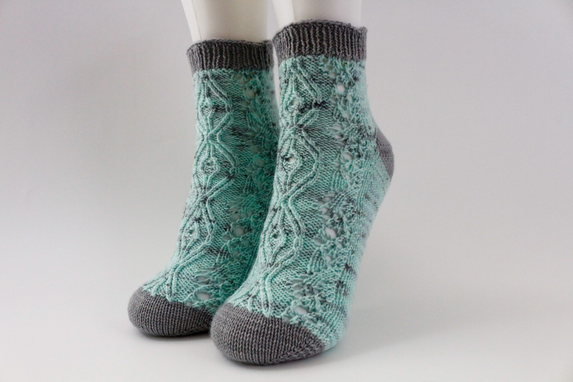 Rosalynn – Worked in the round, this pattern provides both cuff-down and toe-up instructions for a seamless sock, accompanied by charts for pattern motif. While the pattern comes with instructions for a short row heel, it’s adaptable to your personal preferences and unique feet. Links for alternative heels have been included!