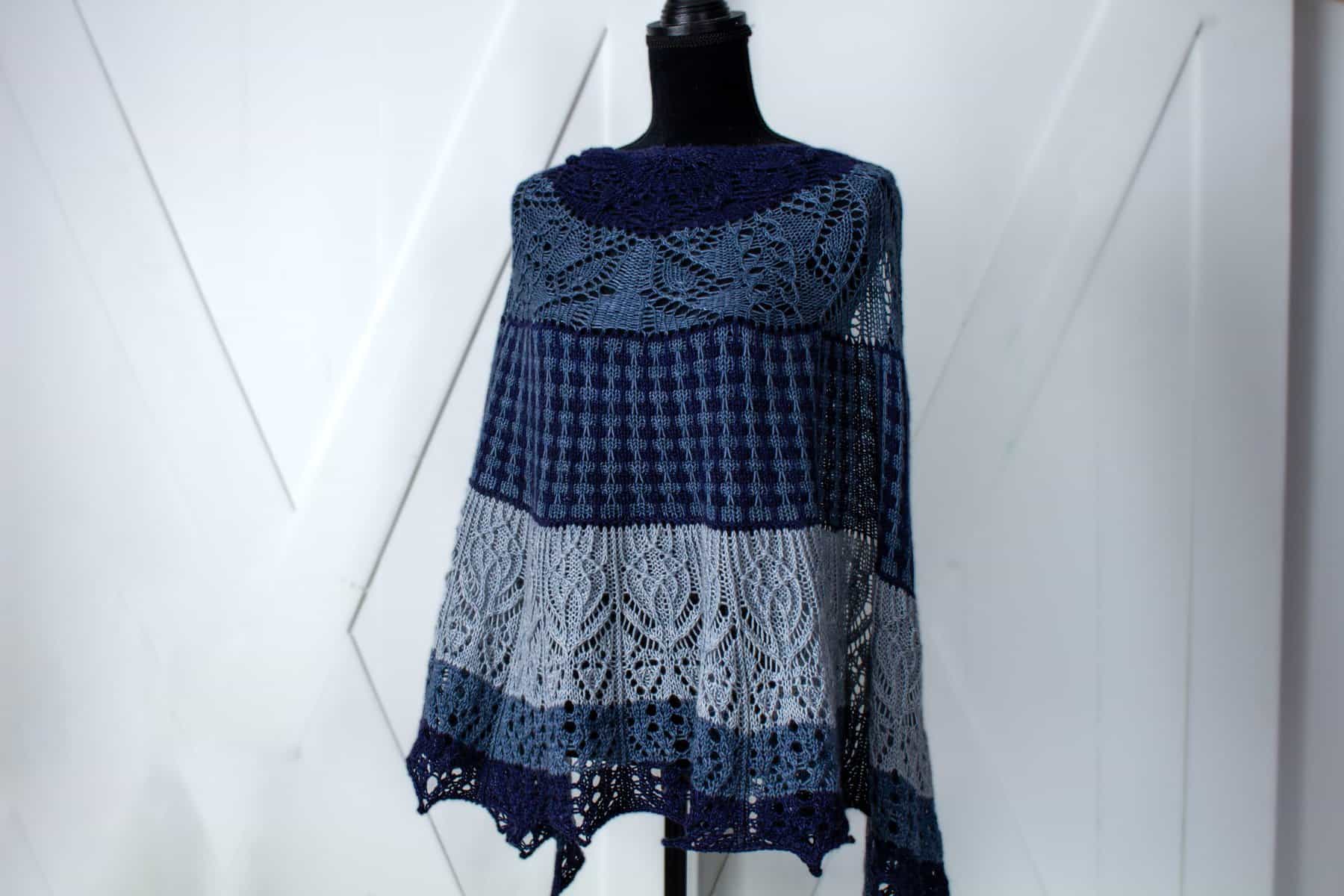 22 stitches by 28 rows in stockinette = 4โ / 10 cm, after blocking. While gauge is not important, as the fit is not crucial, changes in gauge will cause size differences and the yardage required to complete the project.