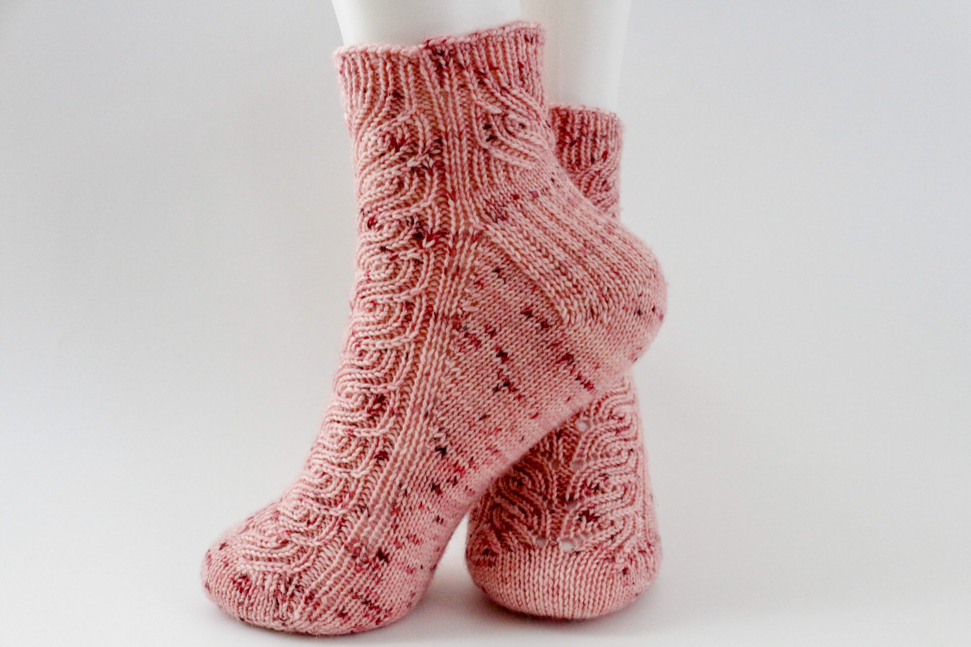 Sweetkins – Worked in the round, this pattern provides both cuff-down and toe-up instructions for a seamless sock, accompanied by charts for pattern motif. While the pattern comes with instructions for a heel flap and gusset, it’s adaptable to your personal preferences and unique feet. Links for alternative heels have been included!