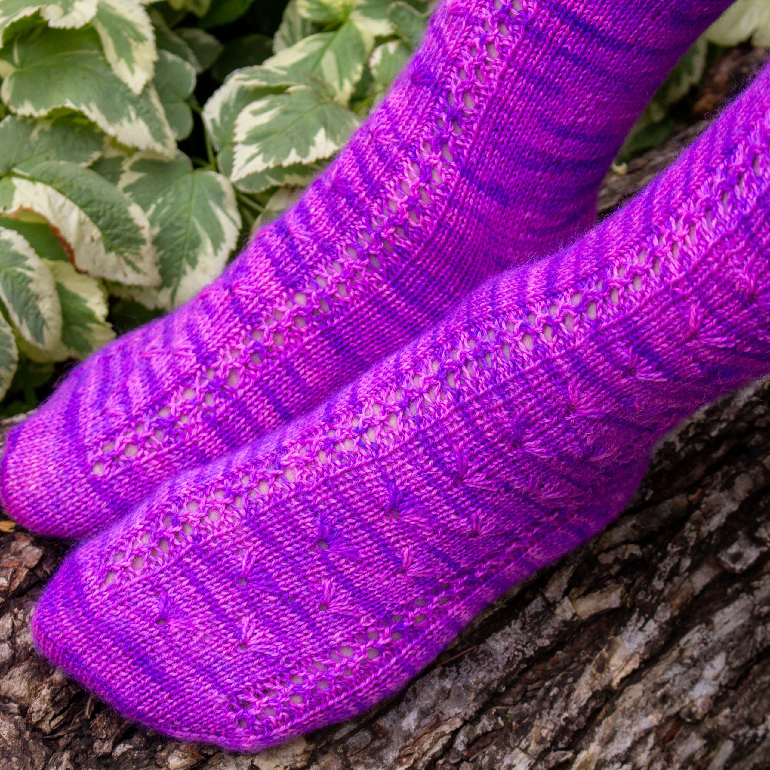 32 stitches by 40 rounds in stockinette = 4โ / 10 cm, after blocking. Gauge is crucial in obtaining the correct fit. Changes in gauge will cause a size difference for your finished socks.